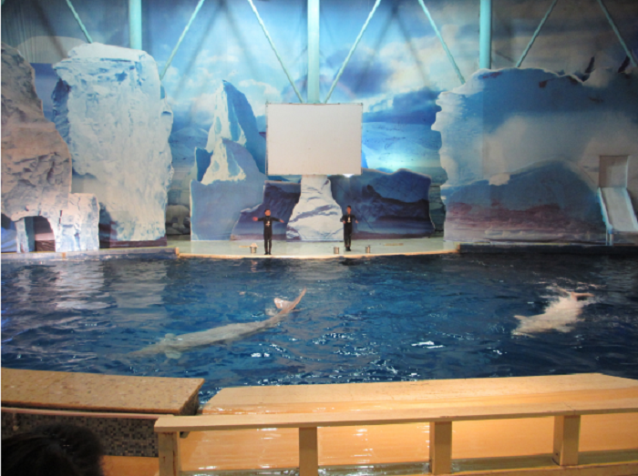 白鲸馆的动物朋友倾力演出,为观众们奉献一场交织着爱与欢笑的大型表演。表演以风趣幽默的解说,轻快的音乐,华丽的布景,以及动物们精湛的演技震撼人心。诉说着人类和动物的和谐相处,传达着爱与欢笑。