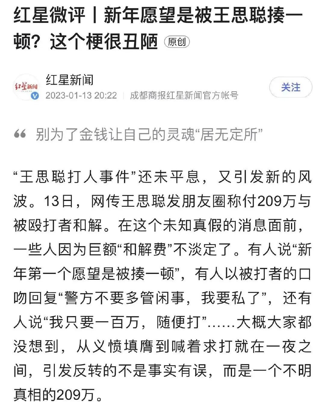 还有人说他挨一顿打买一套房,甚至有网友的新年愿望就是被王思聪打,而且他不要求209万,只要一百万就可以。